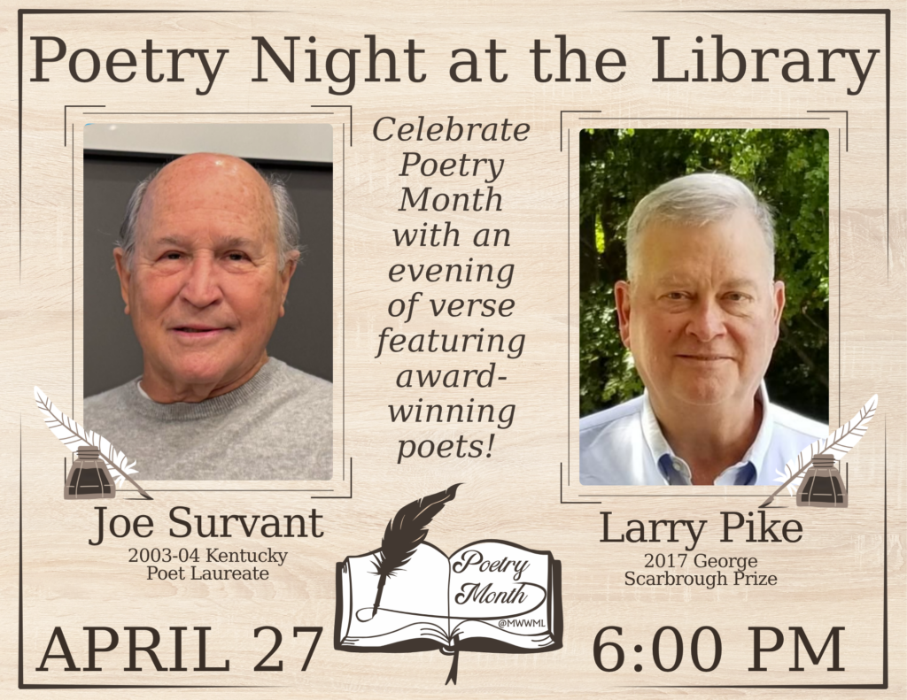 Meet together with other local writers for manuscript critique and for support. Prepare a five-minute section of a manuscript to read, then receive comments from group members with the aim of strengthening your writing. Please bring copies of your selected pages for group members. Open to adult authors of all genres. April 2 meeting will be in the Quiet Reading Room. April 16 meeting will be in the Periodical Room.